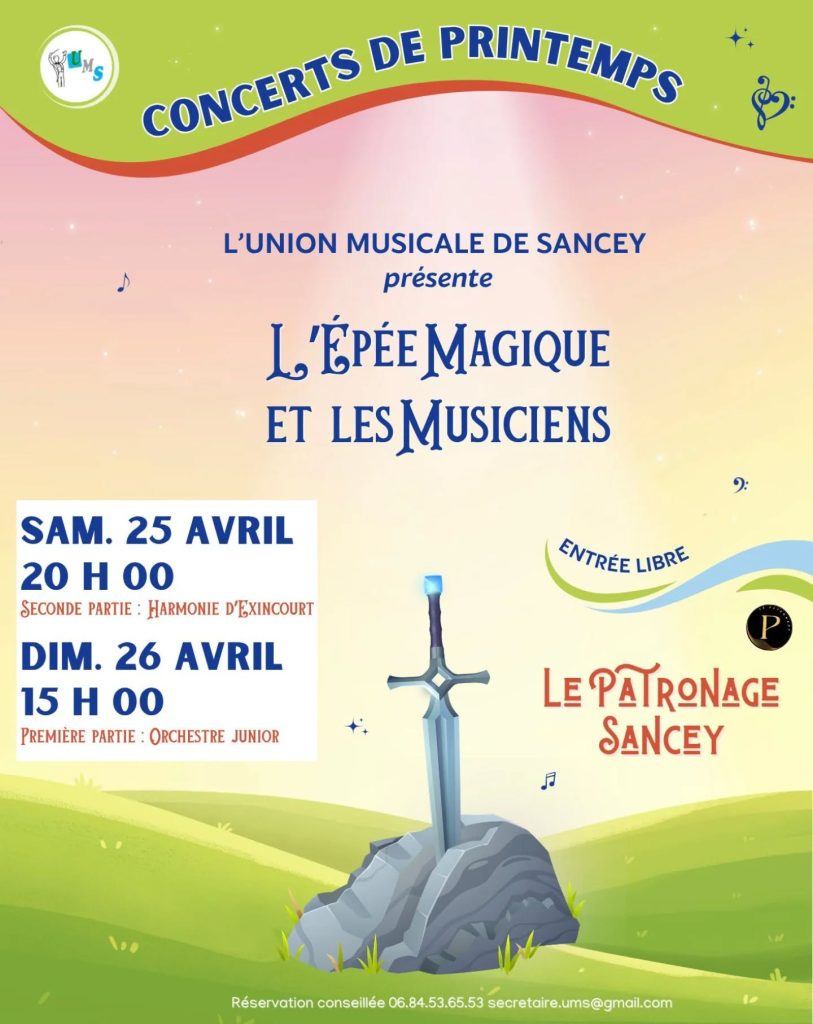 C’est parti pour un tout nouveau programme musical !Après le thème de la Magie, les musiciens vous proposent cette fois un voyage dans le temps pour découvrir la légende d’Arthur et de l’épée magique Excalibur !Mystère, féérie et grande épopée fantastique seront au rendez-vous !- Concert à 20h avec seconde partie l’Harmonie Municipale d’Exincourt